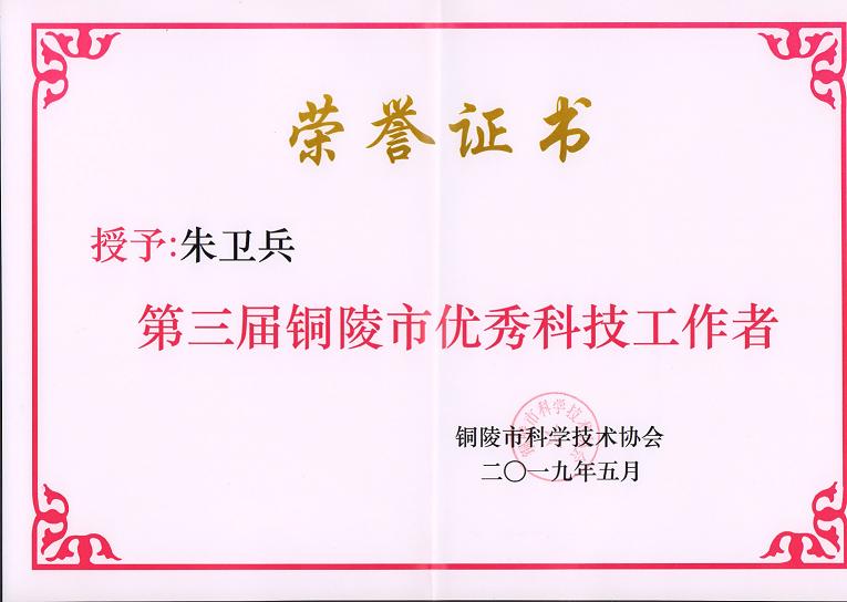 近日,銅陵市科學(xué)技術(shù)協(xié)會公布了“第三屆銅陵市優(yōu)秀科技工作者”評選結(jié)果,公司總經(jīng)理朱衛(wèi)兵為公布的30名優(yōu)秀科技工作者之一。