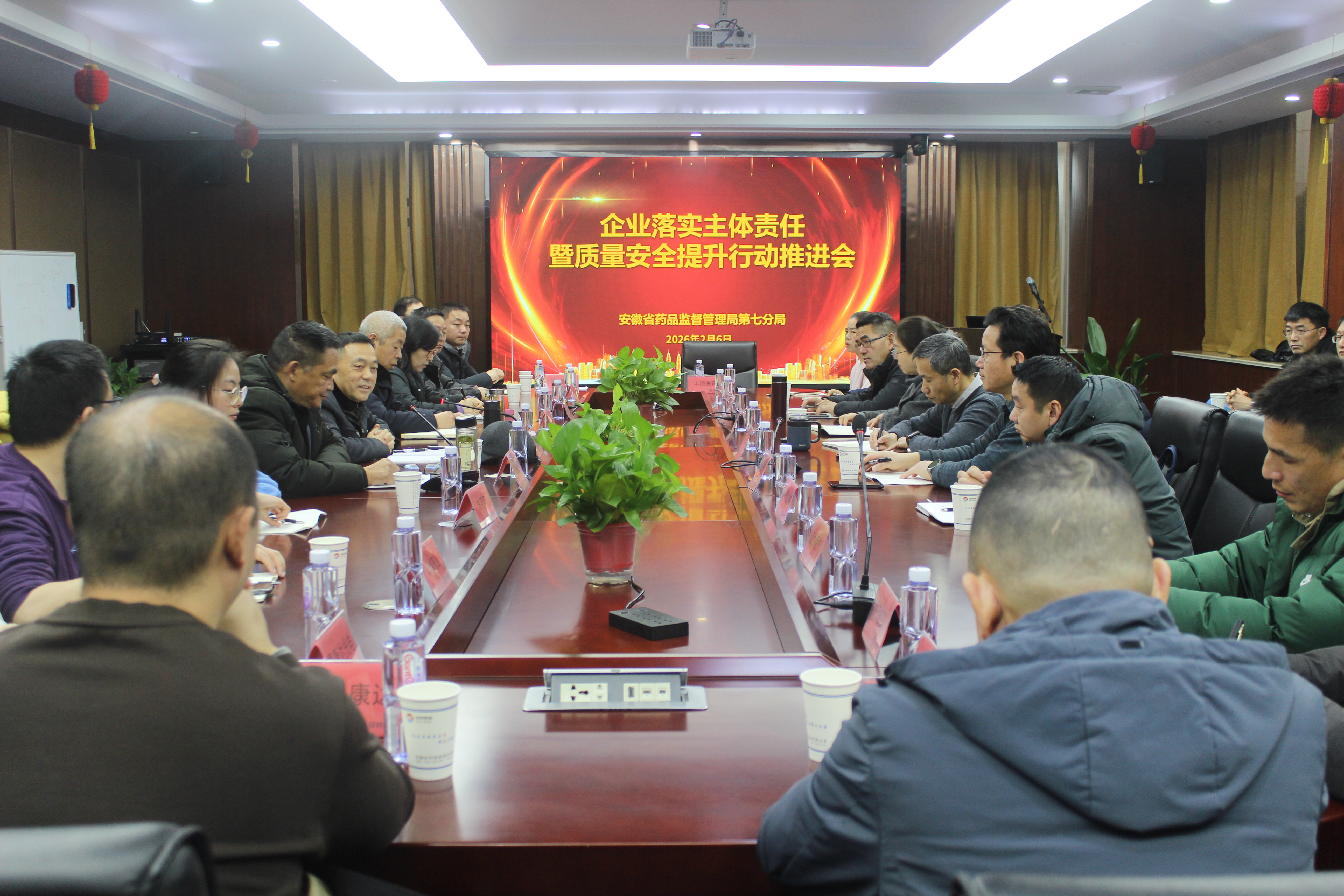 2026年2月6日上午,由安徽省藥品監督管理局第七分局主辦的企業落實主體責任暨質量安全提升行動工作推進會在安徽安科恒益藥業有限公司二樓會議室順利召開。省藥監局第七分局虞舜來、方璋俊、倪敏、甘傳會等領導出席會議,銅陵地區藥品、醫療器械、化妝品生產經營企業共18家負責人、質量負責人及相關管理人員參會。